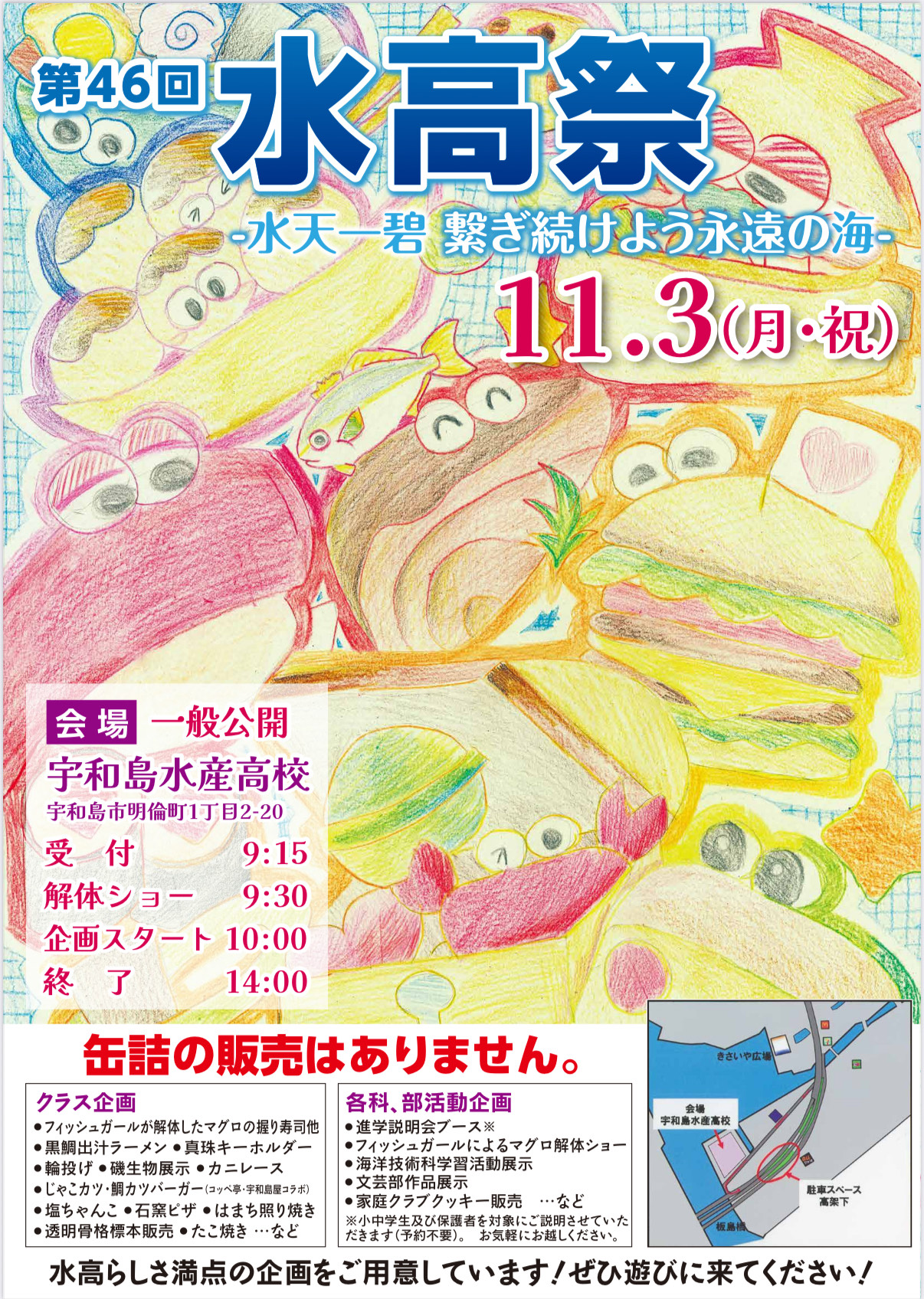 マグロの解体ショーのほか、各クラスが学科の特色を出した企画を一生懸命